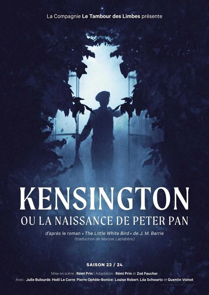 Cependant, KENSINGTON OU LA NAISSANCE DE PETER PAN ne sera pas seulement une genèse, le récit de la naissance de Peter Pan et du mythe de l’enfant éternel. Ce sera avant tout l’histoire d’un homme, le Capitaine W– (probable double fantasmé de Barrie), écrivain solitaire se réfugiant dans la création de ce personnage, qui deviendra l’incarnation de cette enfance condamnée à disparaître. Le spectacle évoquera également une malheureuse histoire d’amour : l’amour d’un homme presque vieux pour une femme mystérieuse, mais aussi l’amour d’un père spirituel pour un enfant à la fois réel et rêvé. C’est enfin une invitation pour un voyage au pays du conte, un voyage dans le temps et les contrées mystérieuses des Jardins de Kensington – espace féerique et central du drame appelé à se jouer.
